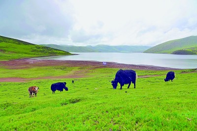 莽錯(cuò)湖位于芒康縣中部莽嶺鄉(xiāng)境內(nèi),湖面海拔4300多米,水域面積20多平方公里。圖為莽錯(cuò)湖畔的牦牛群。光明日?qǐng)?bào)記者 畢玉才攝