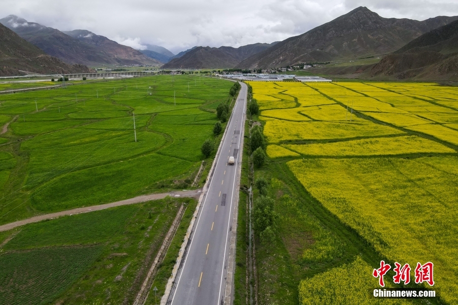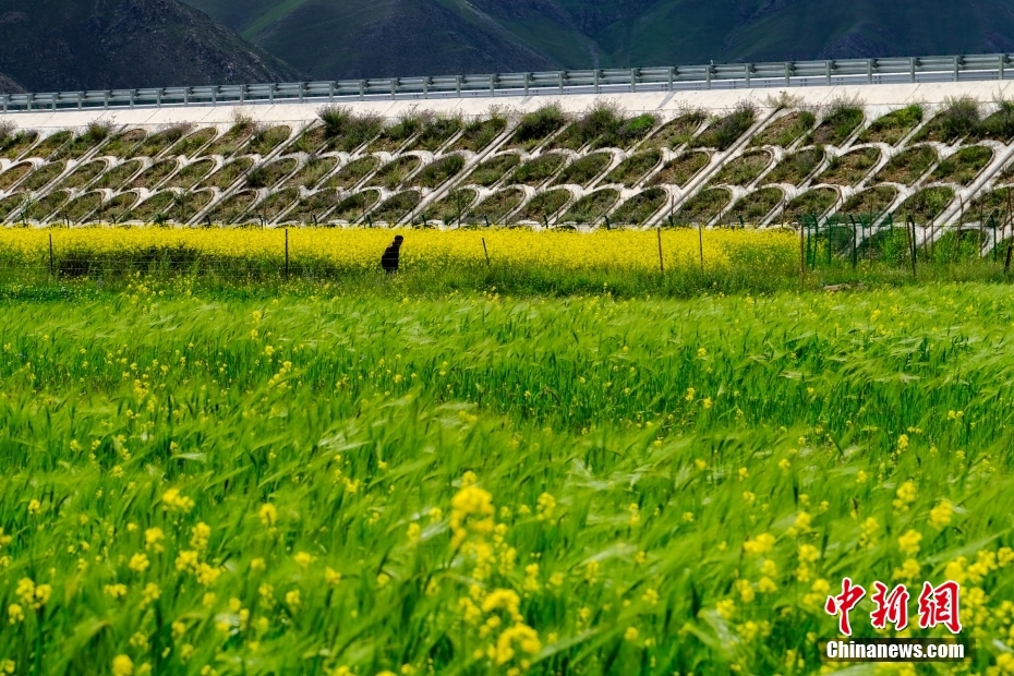 7月24日,西藏拉薩,國道109線一側的油菜花田。