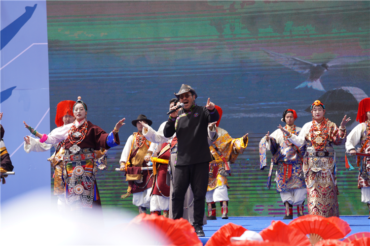 開幕式上,來自然烏鎮(zhèn)小學的200多名學生手持花傘,隨著音樂的節(jié)奏變換著各種復雜的隊型,精彩的表演令人賞心悅目;男女演員分別飾演十八軍戰(zhàn)士和小女孩,以時空對話的形式,演繹了八宿發(fā)展的歷史脈絡。開幕式還邀請了到著名藏族歌手亞東、扎西平措等前來助陣,歌聲穿透陽光,在然烏湖上空回蕩,為當?shù)厝罕妿硪粓鲆暵犑⒀纭?nbsp;