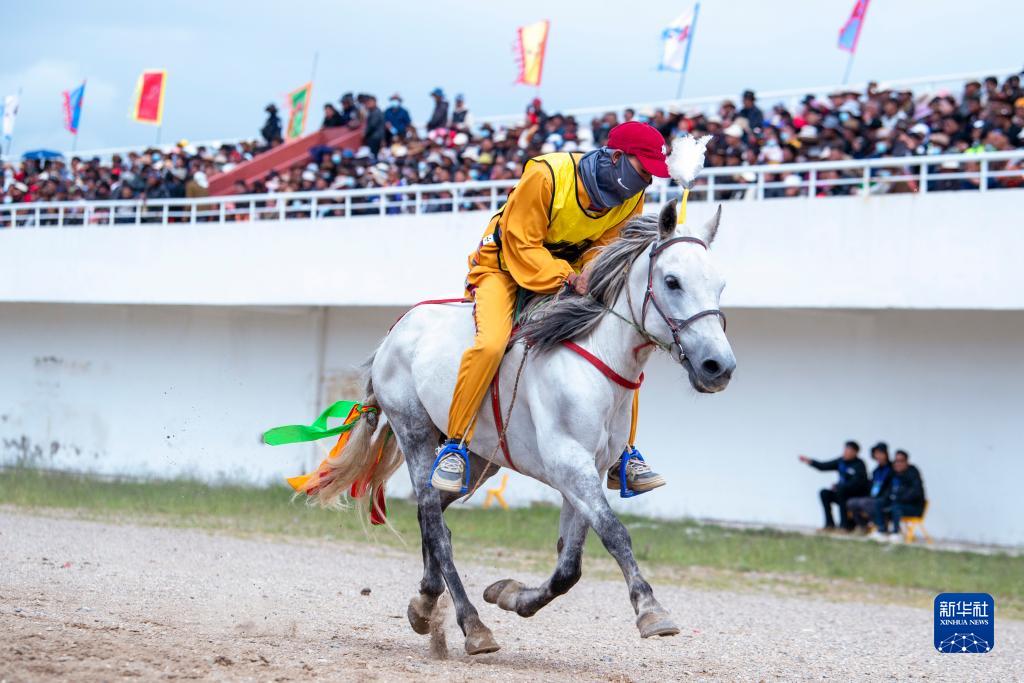8月11日,索朗亞培在走馬比賽的決賽中沖刺。新華社發(fā)(旦增努布攝)