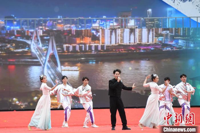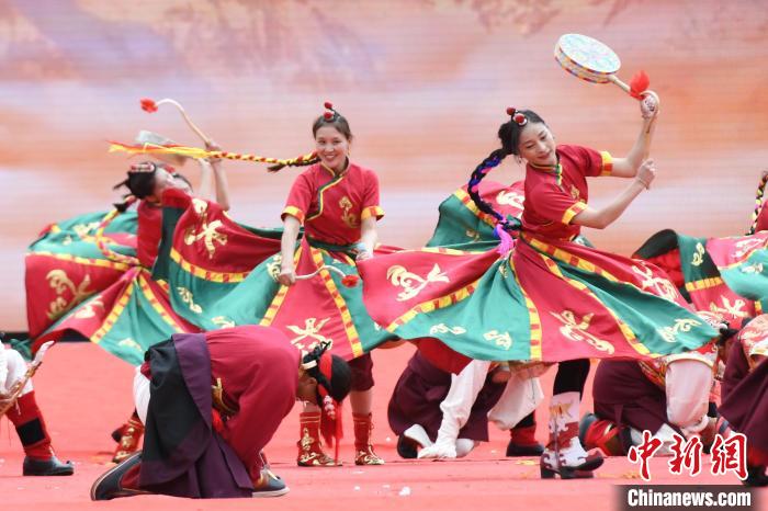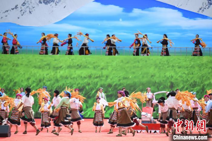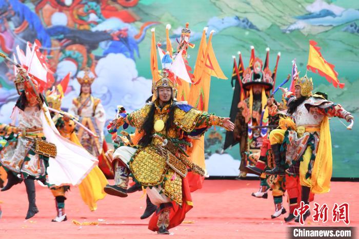 圖為開幕式上的文藝演出。貢嘎來松 攝