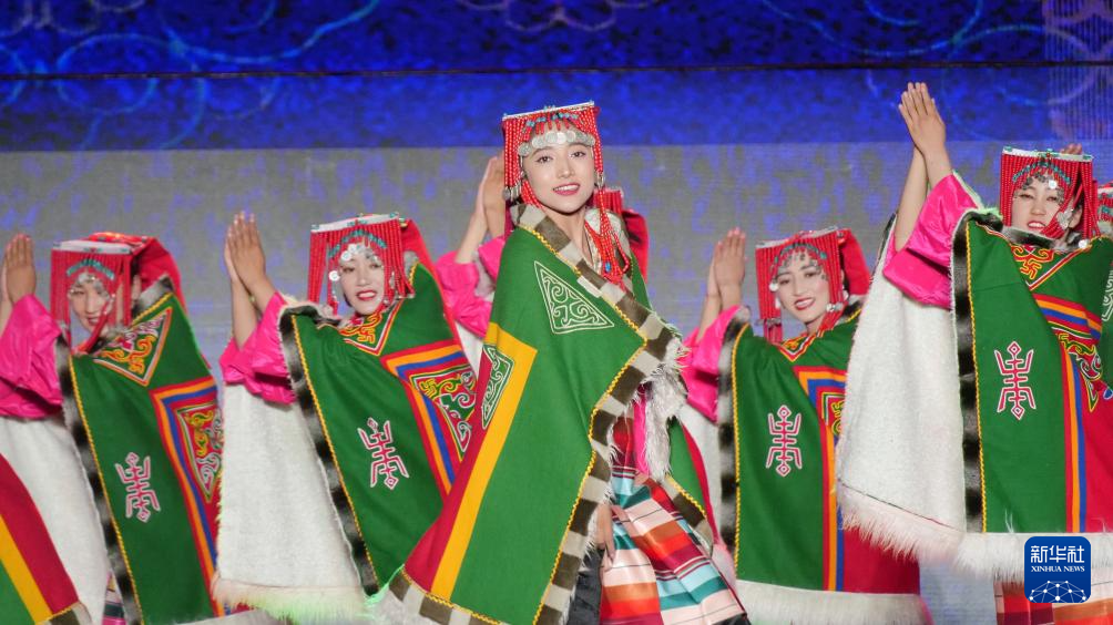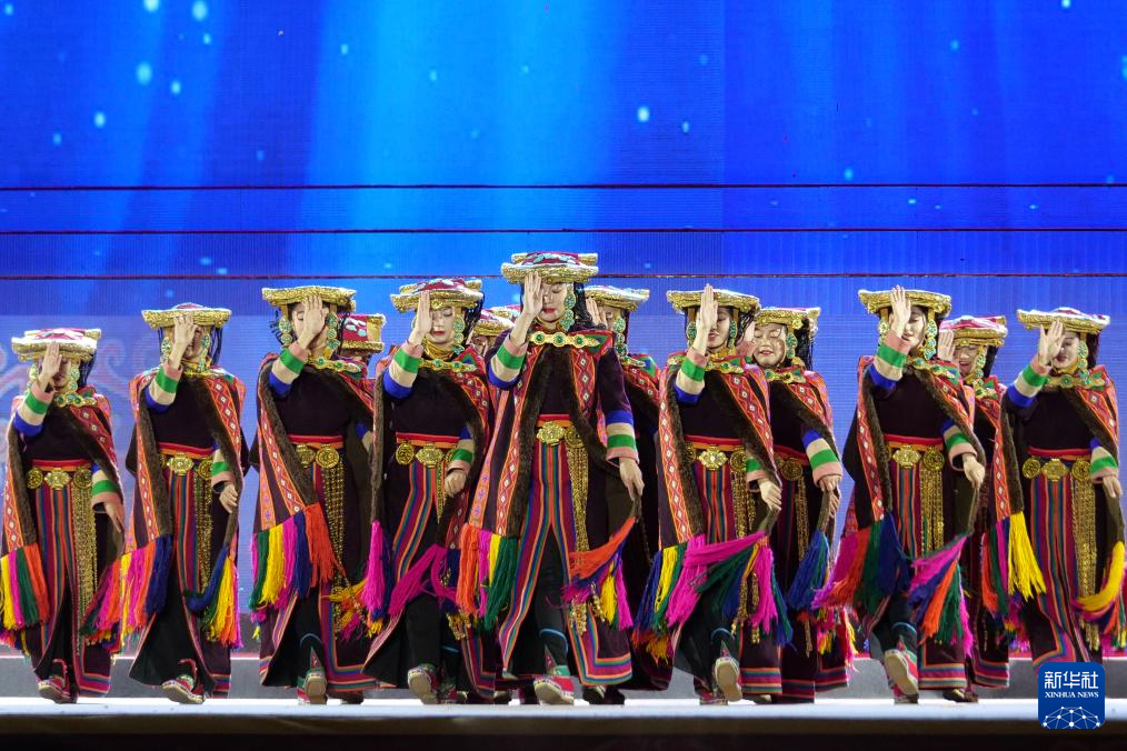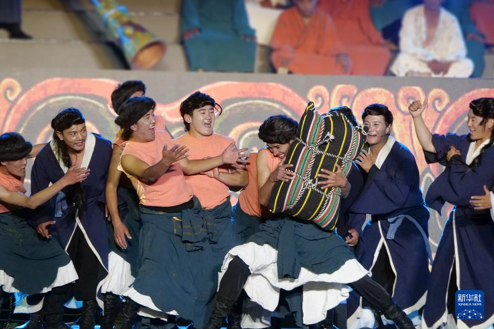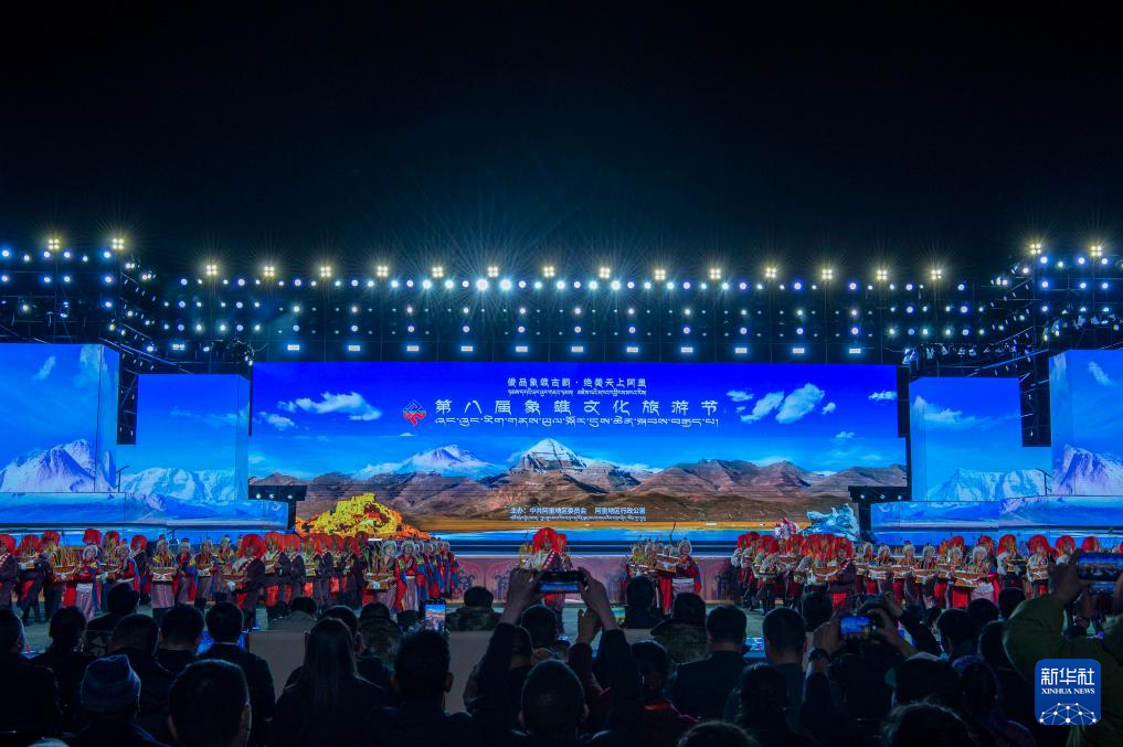 第八屆象雄文化旅游節(jié)開幕式現(xiàn)場(chǎng)的文藝表演(8月21日攝)。新華社發(fā)(旦增努布攝)