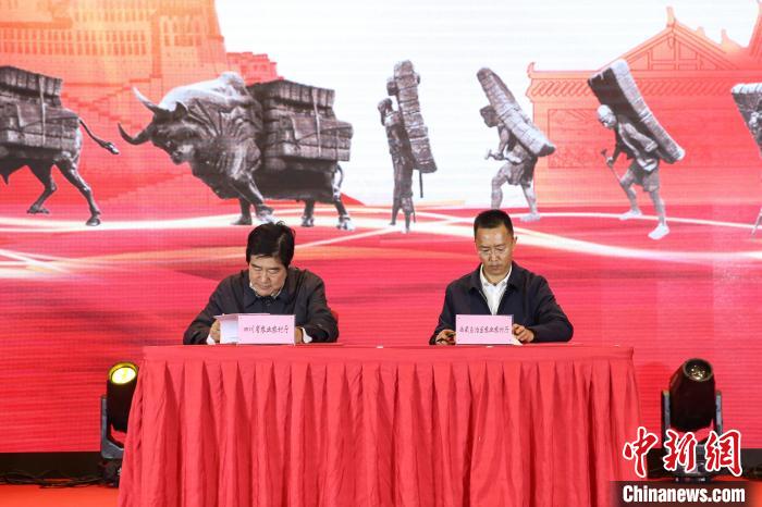 圖為四川省農(nóng)業(yè)農(nóng)村廳一級巡視員子克拉格(圖左)和西藏自治區(qū)農(nóng)業(yè)農(nóng)村廳副廳長羅丹(圖右)簽訂深化農(nóng)業(yè)合作框架協(xié)議現(xiàn)場。貢確 攝