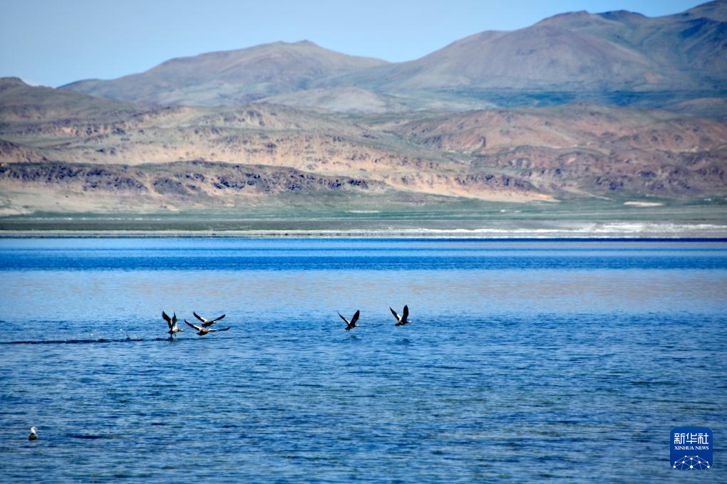飛鳥(niǎo)從達(dá)瓦錯(cuò)湖面掠過(guò)(8月28日攝)。新華社記者 劉文博 攝
