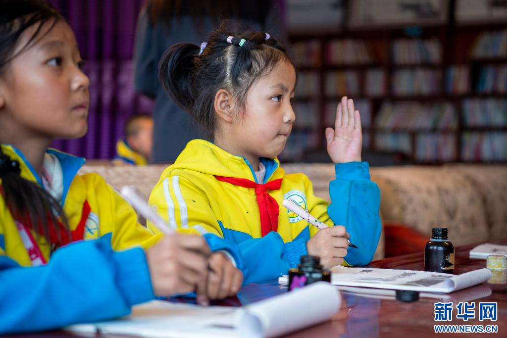 圖為索縣第一小學(xué)學(xué)生在學(xué)習(xí)藏文書(shū)法(9月7日攝)。新華網(wǎng) 旦增努布 攝