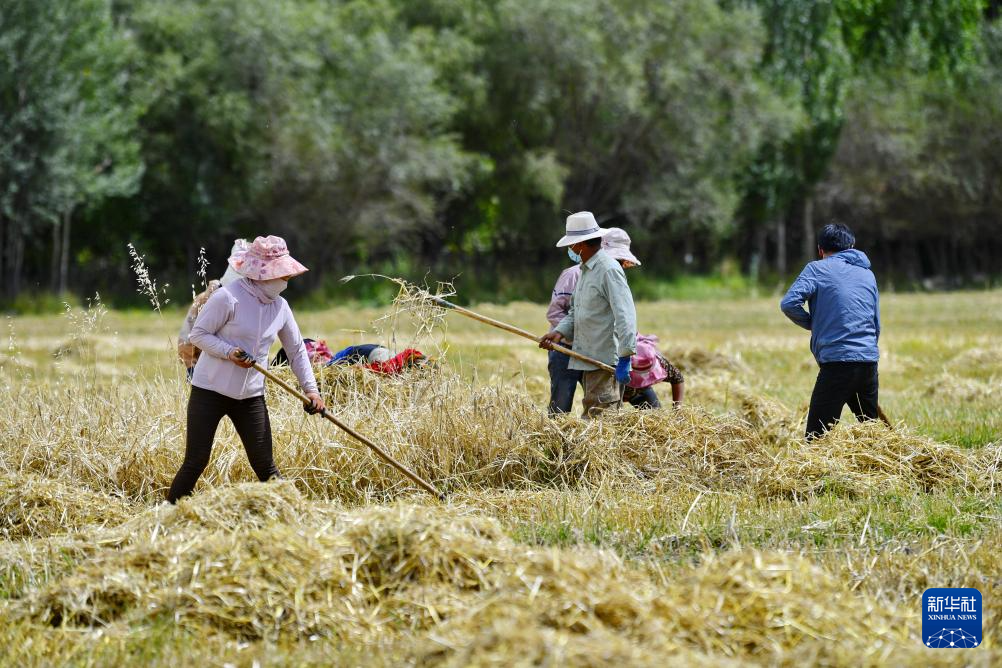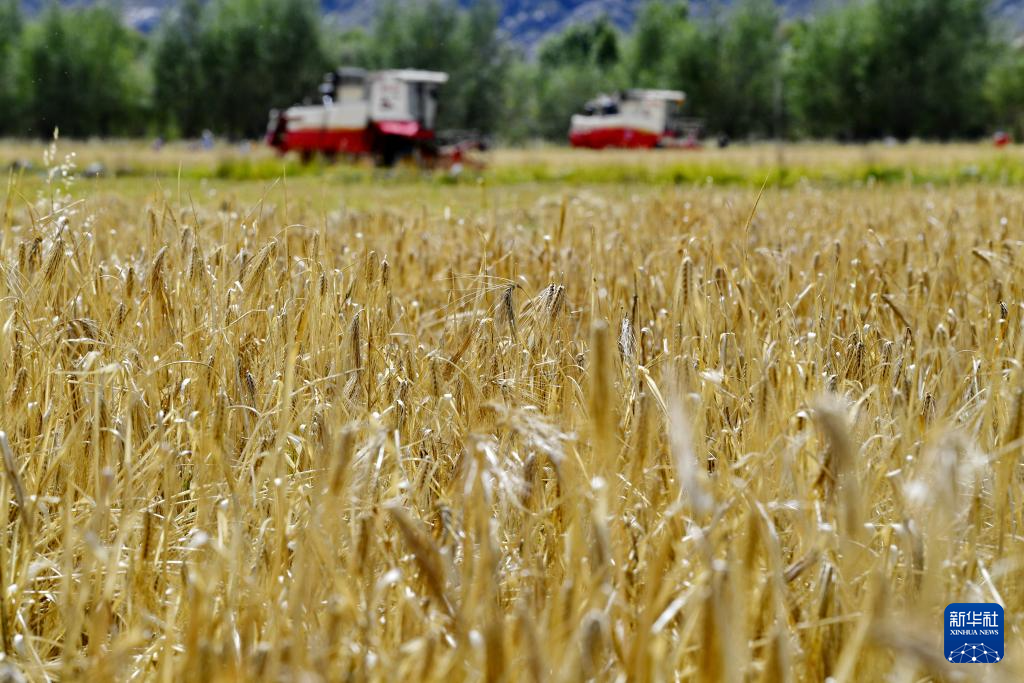 近日,西藏拉薩市曲水縣青稞成熟,人們忙著收割青稞,感受豐收的喜悅。