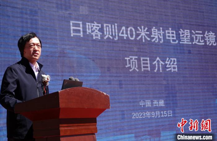 9月15日,中國科學院上海天文臺臺長沈志強在日喀則40米射電望遠鏡項目啟動會上,介紹該項目相關情況。中新網(wǎng)記者 孫自法 攝