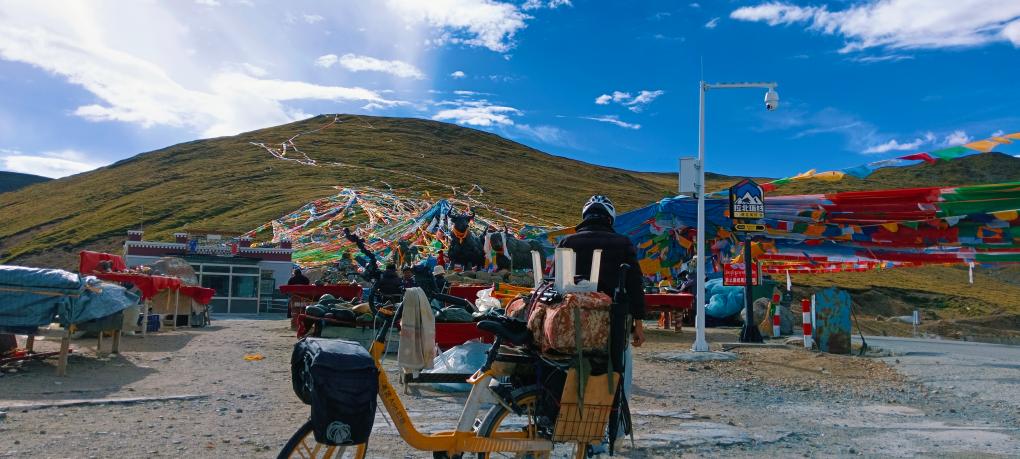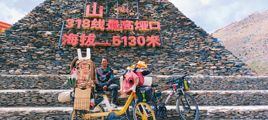 王賢日騎車跨過位于西藏左貢縣境內(nèi)的東達(dá)山埡口