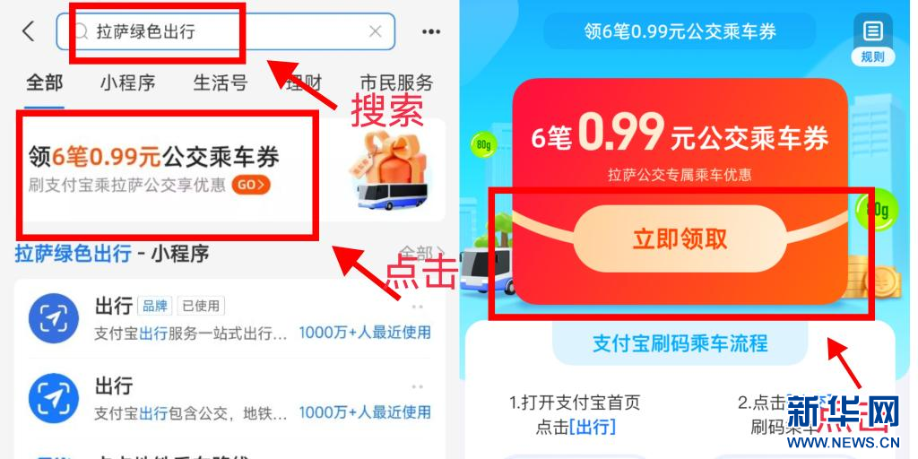 據(jù)介紹,9月20日至10月19日“綠色出行 美好生活”主題月期間,支付寶為拉薩公交乘車碼新用戶提供6筆1分錢乘車優(yōu)惠,市民可以通過支付寶搜索 “拉薩綠色出行”,進入領取頁面領取并享受優(yōu)惠,首次使用電子公交卡的市民,可以在支付寶首頁點擊“出行”,按步驟提示領取乘車碼。?