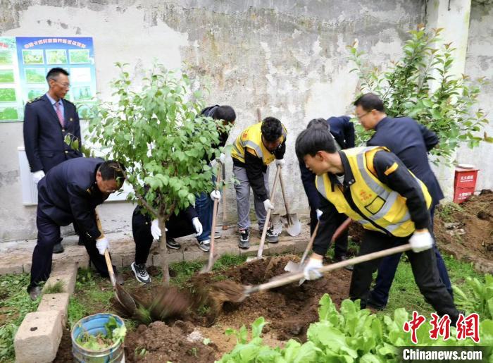 圖為拉薩基礎(chǔ)設(shè)施段黨員代表在援建溫室大棚植樹(shù)。馬生明 攝