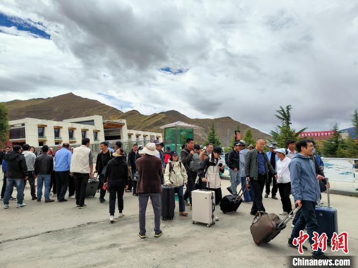 9月23日,乘坐高原復興號動車組列車的乘客抵達拉薩火車站。中新社記者 江飛波 攝