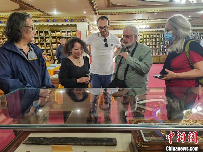 9月20日,外籍專家記者團(tuán)參觀西藏大學(xué)圖書(shū)館藏文古籍研究所。中新社記者 趙延 攝