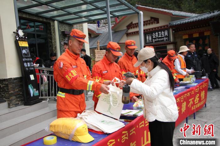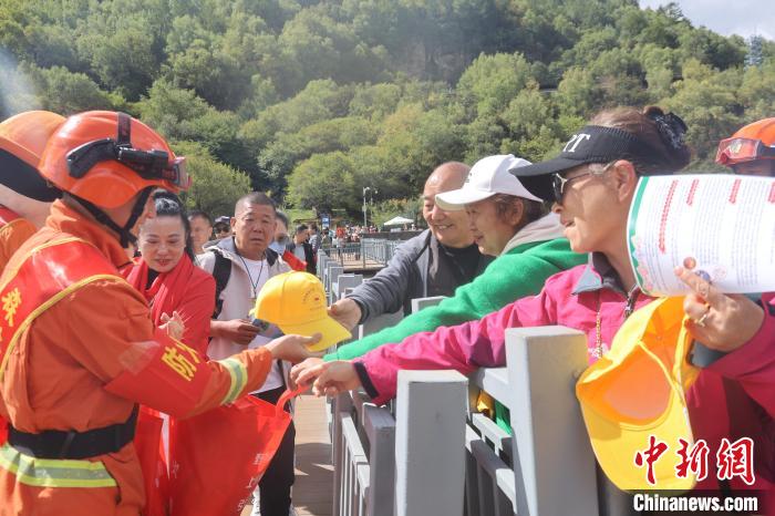 圖為消防員正在景區(qū)入口開(kāi)展防火宣傳。西繞拉翁 攝