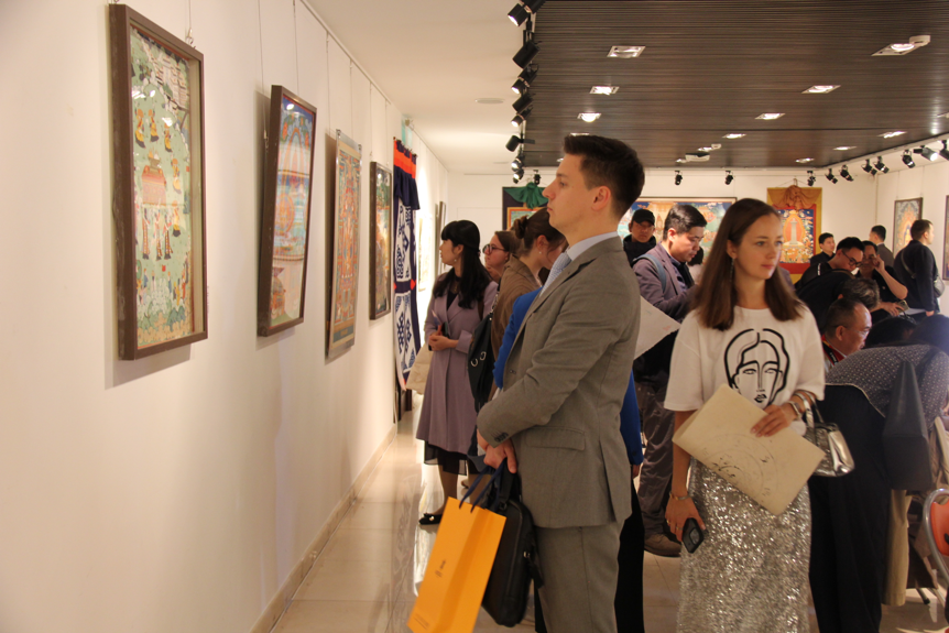 作為“西藏文化周”的重要活動(dòng)之一, “中國(guó)西藏·扎西德勒”唐卡精品展于當(dāng)晚同期開(kāi)幕。唐卡是中華民族藝術(shù)寶庫(kù)中彌足珍貴的非物質(zhì)文化遺產(chǎn),距今已有一千三百多年的歷史,用料考究,繪制復(fù)雜,色澤艷麗,經(jīng)久不退,被稱為“藏民族的百科全書”。本次展覽展出二十余幅具有代表性的精品唐卡佳作,內(nèi)容豐富、構(gòu)圖嚴(yán)謹(jǐn)、細(xì)致精微,神態(tài)生動(dòng)傳神,線條沉穩(wěn)細(xì)膩,色彩艷麗不俗,生動(dòng)詮釋了藏民族的非凡智慧,展現(xiàn)了唐卡獨(dú)特的魅力。當(dāng)晚,唐卡欽則派代表性傳承人白瑪達(dá)娃在現(xiàn)場(chǎng)開(kāi)展唐卡作畫、授課,引起在場(chǎng)嘉賓觀眾的驚嘆贊美和參與熱情!