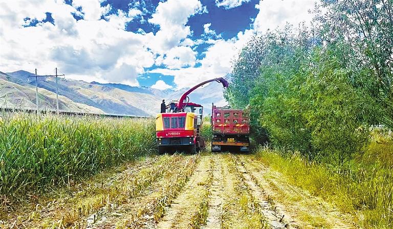 走在雅魯藏布江沿岸,成片的玉米地呈現(xiàn)眼前,讓人意想不到的是,半年前這里還是一片荒地?!拔覀兘衲攴N植玉米850多畝,其中,600多畝的玉米長勢良好,預(yù)計(jì)每畝可收玉米飼草2噸以上?!甭逯檫_(dá)瓦說。目前,玉米秸稈已陸續(xù)開始收割。