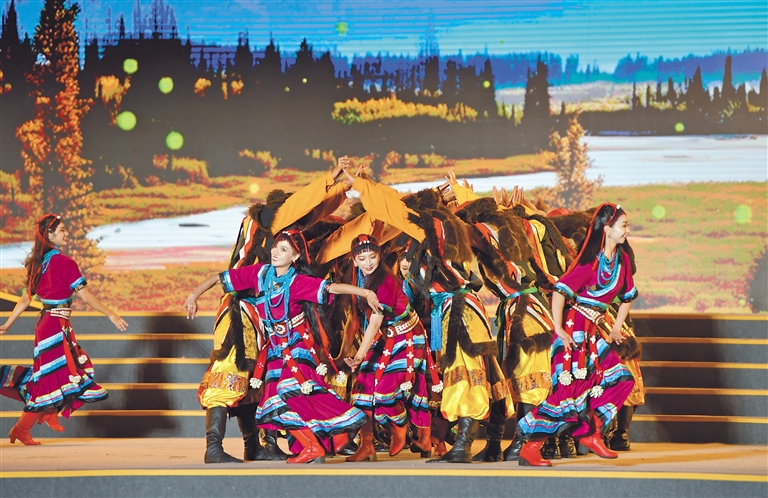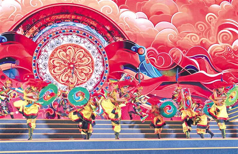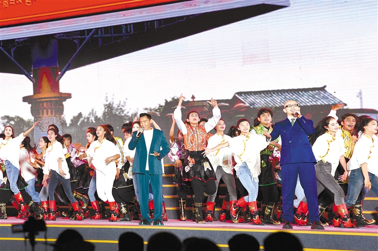 西藏自治區(qū)歌舞團(tuán)、林芝市民族藝術(shù)團(tuán)表演的開場(chǎng)歌舞《扎西德勒》。記者 洛?!z