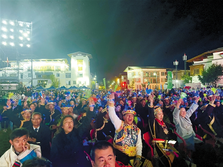 觀眾觀看第三屆中國西藏“環(huán)喜馬拉雅”國際合作論壇文藝演出。記者 洛桑 攝