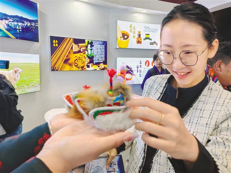 “這次畜產(chǎn)品展銷活動上,我們主要銷售天線帽工藝品、玉石、羊毛圍巾、羊毛毯等,產(chǎn)品價格比較實惠,前來咨詢購買的人也很多。展銷不到兩個小時,就賣了1000多元。”安多縣措那湖文化傳播有限責(zé)任公司負責(zé)人貢布多吉的臉上充滿了喜悅。
