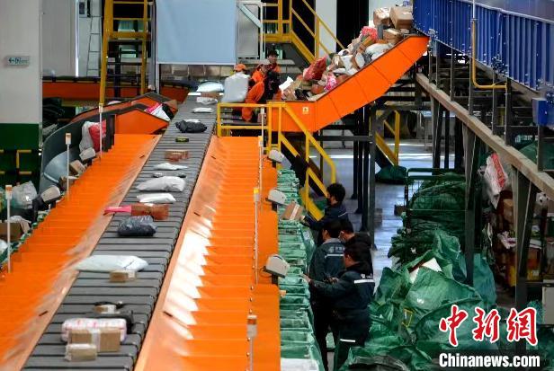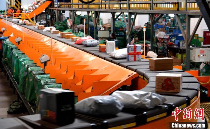 圖為自動(dòng)化分揀設(shè)備正在分揀快遞包裹。西藏自治區(qū)郵政管理局供圖