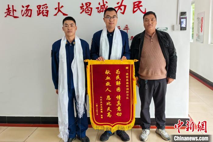 10月9日,為了感謝消防救援人員的緊急援助,被救助的孕婦家屬拿著一面“為民解困情真意切,獻血救人恩比天高”字樣的錦旗送到波密縣森林消防中隊。家屬不停地說著感謝,并說因為輸血及時,孕婦已經(jīng)轉(zhuǎn)危為安了。