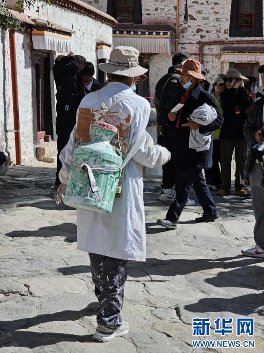 10月18日,布達(dá)拉宮“美容師”們?cè)趪姙⑼鈮?。新華網(wǎng) 旦增努布 攝