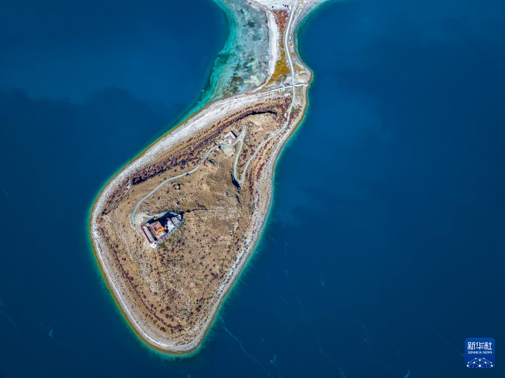 這是10月25日拍攝的羊卓雍錯和日托寺(無人機(jī)照片)。新華社記者 姜帆 攝