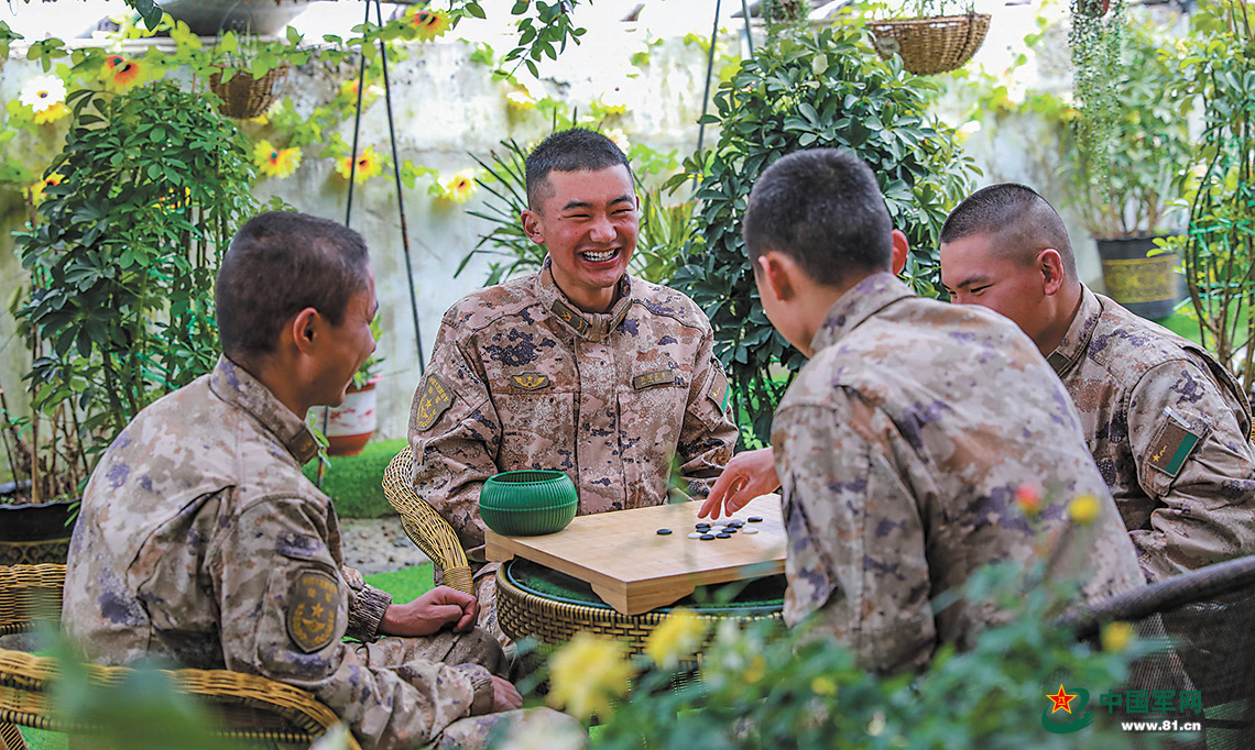“陽光大棚”內(nèi)綠植遍布,環(huán)境清新,成為官兵休閑娛樂的好去處。