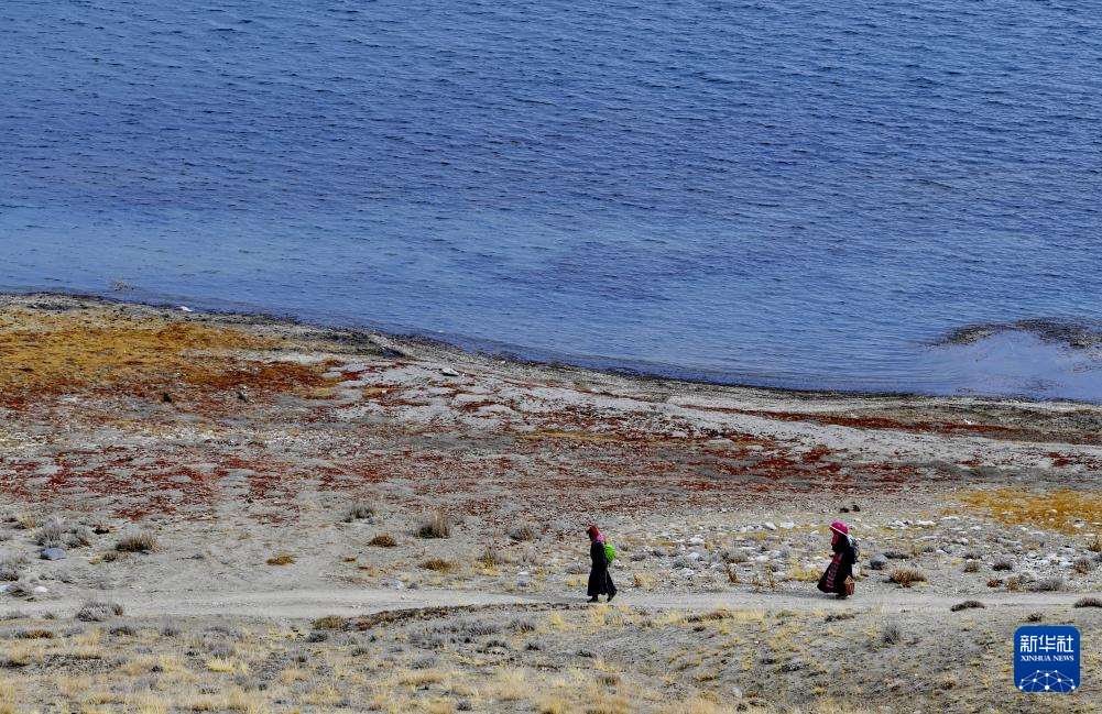 瑪旁雍錯湖畔的轉(zhuǎn)湖人(10月29日攝)。新華社記者 張汝鋒 攝