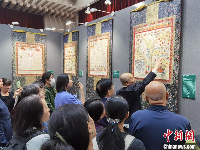 中國藏學(xué)研究中心北京藏醫(yī)院院長仲格嘉在開幕式上致辭表示,起源和根植于中華民族的藏醫(yī)藥,是中國中醫(yī)藥學(xué)寶庫中的一顆璀璨明珠,迄今已有3800多年發(fā)展歷史。在藏醫(yī)學(xué)史上,形成了別出心裁的藏醫(yī)唐卡,以浩瀚畫卷,形象生動、系統(tǒng)描繪了藏醫(yī)藥學(xué)的體系框架、基礎(chǔ)理論、臨床實(shí)踐技法,以及藏醫(yī)史、醫(yī)德醫(yī)風(fēng)、養(yǎng)生保健等內(nèi)容。除實(shí)用價值外,藏醫(yī)唐卡還有很高的民族學(xué)、歷史學(xué)、宗教學(xué)及美學(xué)價值,堪稱“學(xué)習(xí)藏醫(yī)藥學(xué)的百科全書”。