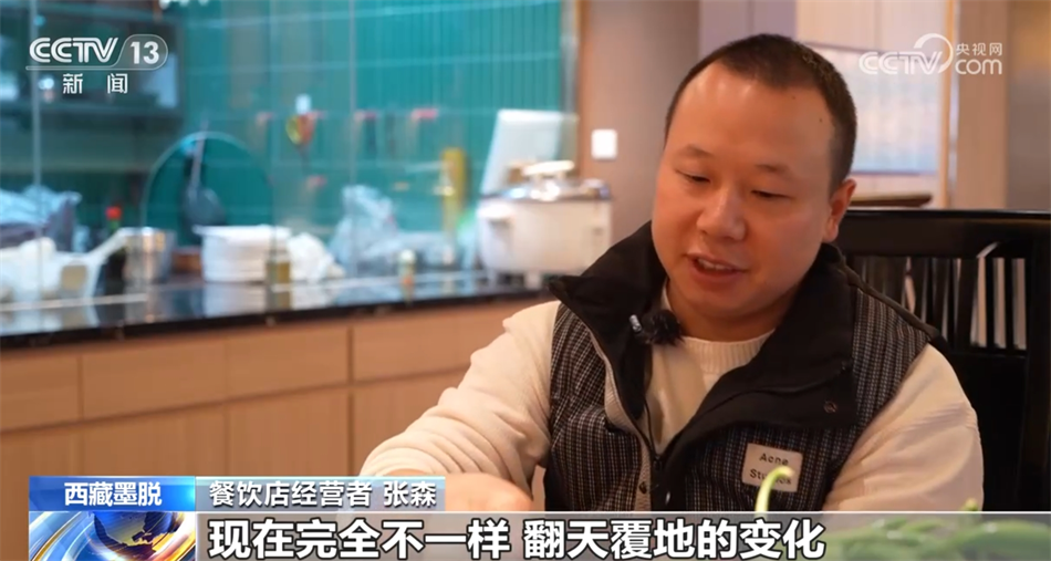 餐飲店經(jīng)營者 張森:剛開店的時候,食材每天都要從波密自己開車去拉。早上六點鐘從墨脫縣就出發(fā),來回要晚上十點鐘才能到墨脫。吃一次魚是很難很難的,路太難走了,車也走得慢,魚拉過來都會死掉,時間太長了?,F(xiàn)在不用去波密買菜,都在我們這邊菜市場采購就行了,買一個多小時買完了?,F(xiàn)在完全不一樣,翻天覆地的變化,路也好了,生活物資也跟得上,水果那些也很豐富。
