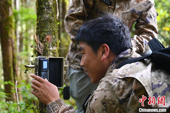 此次進(jìn)山,除了巡護(hù),他們還有個(gè)重要的任務(wù),查看原始森林里布設(shè)的紅外相機(jī)。“山羊”索朗頓珠憑著記憶帶著大家輕松找到了林中布設(shè)的紅外相機(jī)。紅外相機(jī)正常運(yùn)行,影像記錄了待辨認(rèn)的野生動(dòng)物。