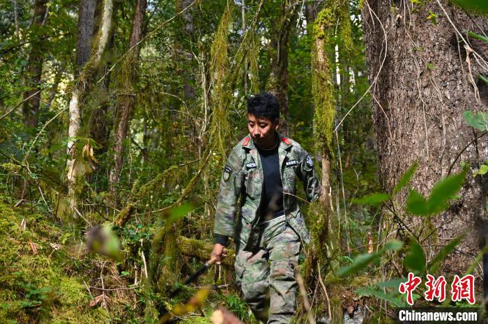 3名管護(hù)員到達(dá)格當(dāng)鄉(xiāng)最深處的一片原始森林。正值深秋,對(duì)于管護(hù)員們來說是最好的季節(jié),雨季結(jié)束,蚊蟲也少。他們僅帶了背包和道具,管護(hù)站副站長索朗羅珠說:“今天不用過夜,帶的裝備很簡單?!?/p>