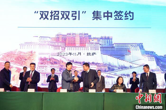 14日,西藏自治區(qū)在拉薩舉行“雙招雙引”(援藏招商引資、招才引智)集中簽約儀式。簽約儀式上,共簽約援藏招商引資項目20個,協(xié)議資金103.08億元(人民幣,下同),涉及清潔能源、生物科技、特色農(nóng)牧、綠色工業(yè)、現(xiàn)代服務(wù)等領(lǐng)域。21名引進(jìn)專家人才代表參加現(xiàn)場簽約。