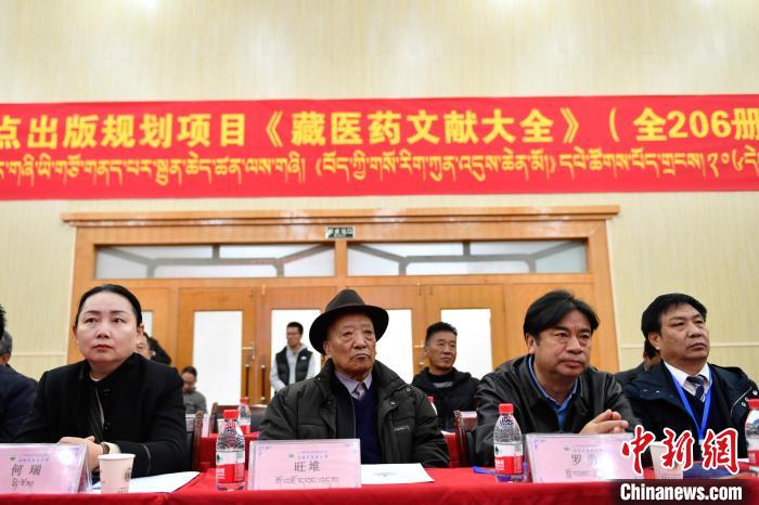 圖為《藏醫(yī)藥文獻(xiàn)大全》贈(zèng)書(shū)儀式現(xiàn)場(chǎng)。貢嘎來(lái)松 攝