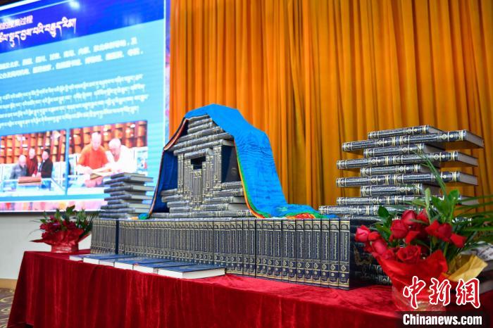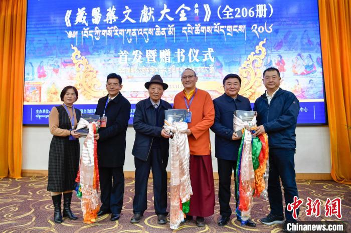 圖為 《藏醫(yī)藥文獻(xiàn)大全》首發(fā)暨贈(zèng)書(shū)儀式現(xiàn)場(chǎng)。貢嘎來(lái)松 攝
