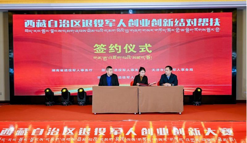 儀式上,西藏自治區(qū)退役軍人事務廳分別與湖南省退役軍人事務廳、浙江省退役軍人事務廳(線上同步簽約)、天津市退役軍人事務局簽署了結對幫扶協議,為助力西藏退役軍人創(chuàng)業(yè)創(chuàng)新,更好地服務經濟社會發(fā)展奠定了基礎。