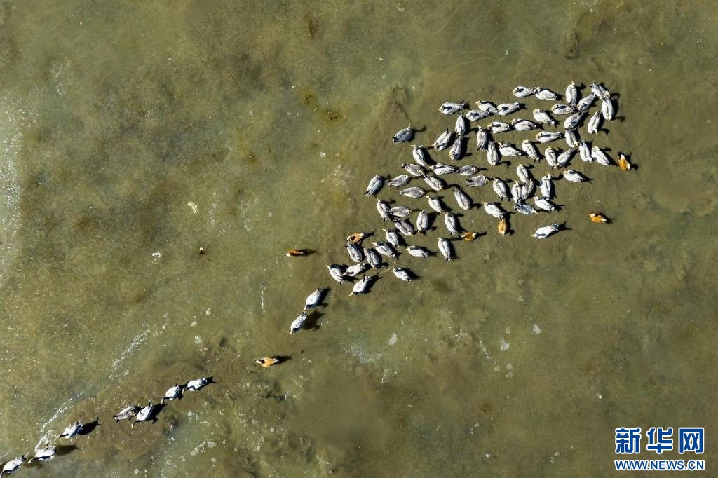 11月17日,在哲古湖拍攝的鳥群(無人機照片)。新華網(wǎng) 旦增努布 攝