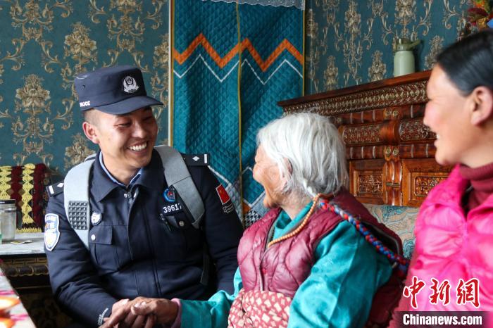 圖為日土邊境派出所民警上門(mén)為出行不便的民眾辦理證件。任博 攝
