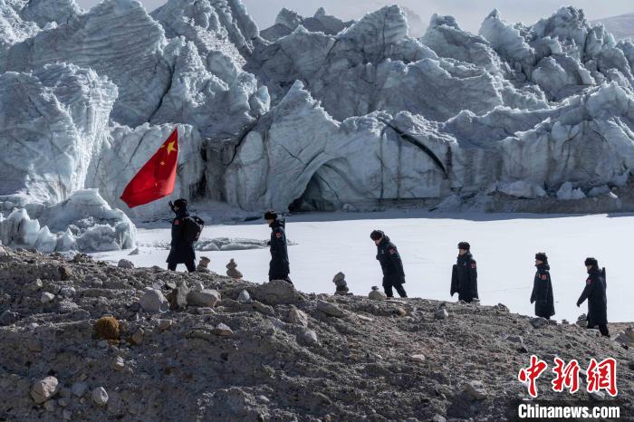 近日,西藏出入境邊防檢查總站普瑪江塘邊境派出所對(duì)轄區(qū)海拔5600米的崗布冰川(中不邊境)開(kāi)展第332次巡邏。