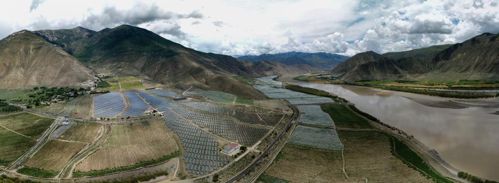 鳥瞰桑日縣高海拔葡萄種植基地(7月26日攝,無人機照片)。新華社記者 姜帆 攝