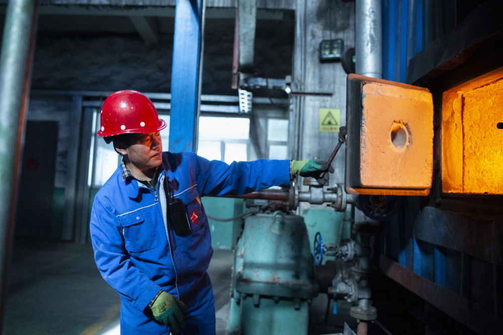 12月15日,熱源廠工人扎巴在查看鍋爐燃燒情況。新華社發(fā)(旦增努布攝)