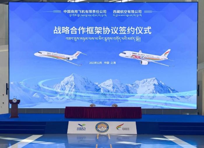 據(jù)“西藏航空”公眾號消息,12月17日,西藏航空與中國商飛公司簽署戰(zhàn)略合作框架協(xié)議,共同推進研制具有我國自主知識產(chǎn)權(quán)的國產(chǎn)大飛機高原機型。