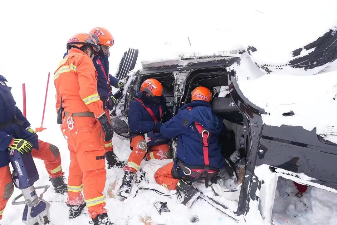 65名隊(duì)員到達(dá)現(xiàn)場(chǎng)時(shí),天已經(jīng)黑透,周圍大風(fēng)呼嘯,數(shù)輛受災(zāi)車輛被直接埋壓在雪下,救援難度很大,很多隊(duì)員都心里直打顫。