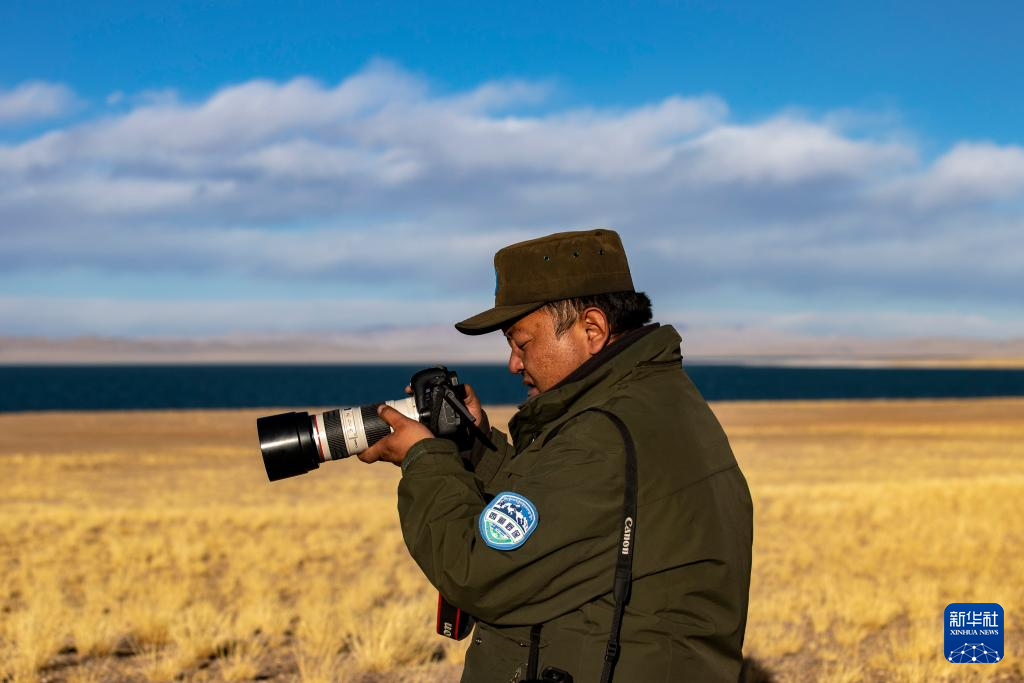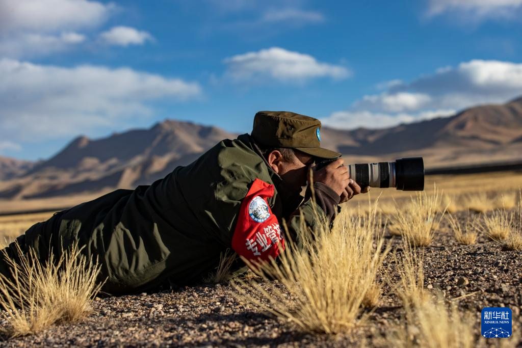 格桑倫珠在巡護途中拍攝野生動物(12月21日攝)。新華社記者 姜帆 攝