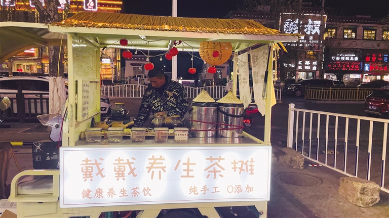 戴新力的攤位推出了玫瑰、桂花、茉莉、黑糖生姜4種口味的奶茶,售價從18元至28元不等。記者看到,玫瑰味的罐罐奶茶,原料除了鮮奶和茶葉,還添加了玫瑰花、紅棗、枸杞等材料。上述原料在陶罐中加熱后,再裝入奶茶杯中可以攜帶飲用?!磅r奶和茶葉中加了紅棗、枸杞,感覺是一杯很健康的奶茶?!秉c(diǎn)單后在一旁等待的市民李女士說,秋冬季節(jié),超市里的常溫飲料喝起來有點(diǎn)涼,這種熱飲喝起來腸胃更舒服,而且看起來都是一些養(yǎng)生的食材,感覺比較放心。