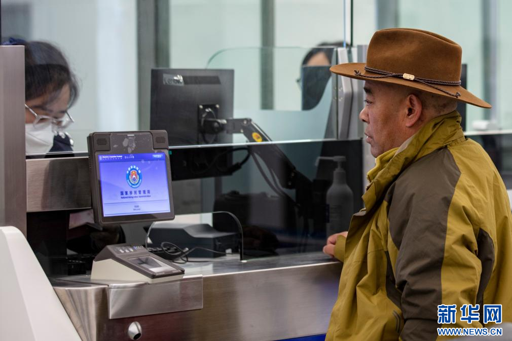 出境旅客正在拉薩貢嘎國(guó)際機(jī)場(chǎng)辦理出入境相關(guān)手續(xù)。新華社記者姜帆 攝