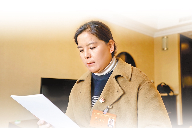 在人大代表駐地見到米瑪普尺時(shí),已是晚上8點(diǎn)多。與去年第一次參加自治區(qū)兩會(huì)時(shí)的緊張心情不同,經(jīng)過(guò)一年錘煉的她多了幾分從容與期待。