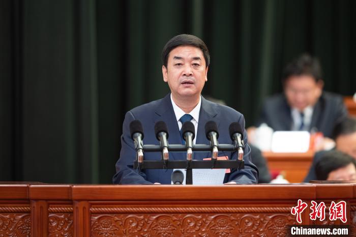 圖為西藏自治區(qū)主席嚴(yán)金海作政府工作報告。貢嘎來松 攝