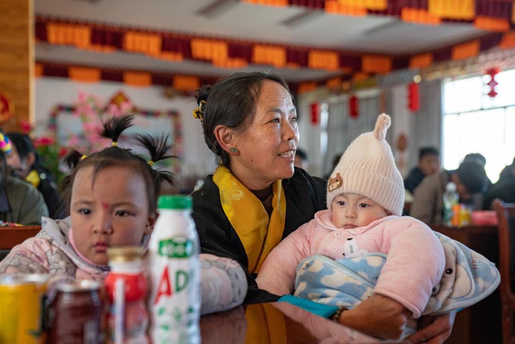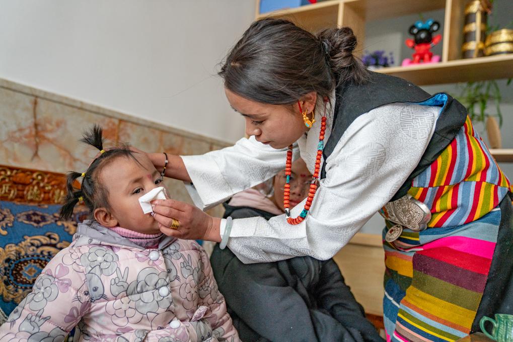 1月8日,愛心媽媽旦增卓瑪在照顧孩子。新華社照片,拉薩,2024年1月9日新華社發(fā)(丁增尼達攝)