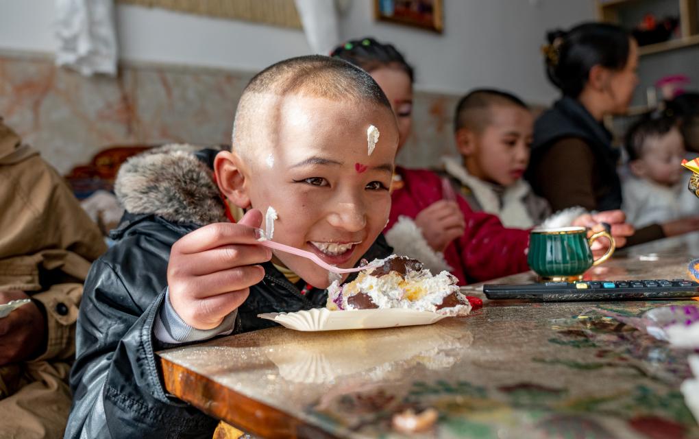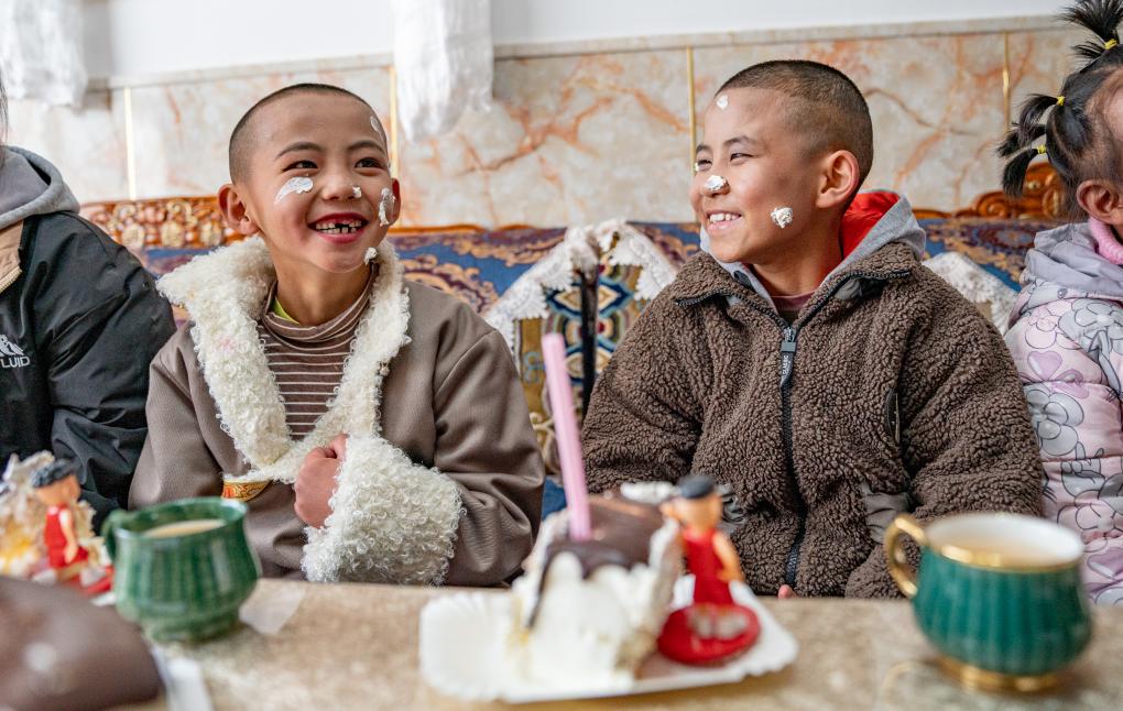 1月8日,“幸福家庭”的孩子們在吃蛋糕。新華社照片,拉薩,2024年1月9日 新華社發(fā)(丁增尼達攝)